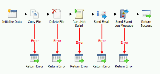 A closer look into the above runbook will reveal that there are multiple “return Data” activity used to return error information to the caller of this runbook; one for each activity.