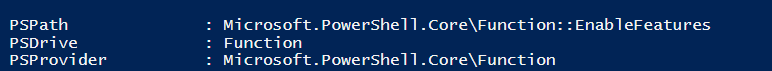 Also, if you change the drive and change it to function drive, the configuration “EnableFeatures” would be visible within the list of functions. To prove type the following command within Powershell ISE.