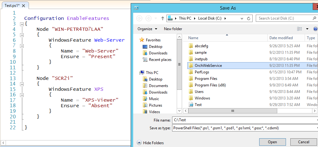 We have saved the Configuration as Test.ps1 at C:\