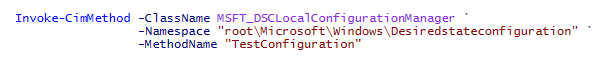 Last few posts discussed and described the process of sending and applying configurations to the target nodes. In this post, we will look at testing the configuration for their validity and check their drifts from their expected configuration. If there is a configuration drift then either we can re-apply the configuration using ApplyConfiguration method shown before or leave it as is.