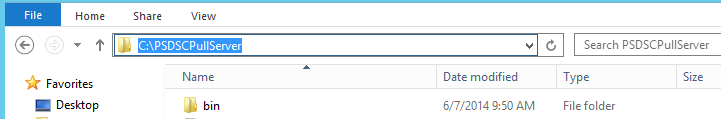 Create the physical folder that would be mapped to Website virtual path. In Windows explorer, navigate to C:\ and create a new folder named “C:\PSDSCPullServer”. Also, within this new folder, we create a sub folder named “Bin”. We have choosen here to create a folder directly under C:\. The readers are free to choose any valid file system location. If the location is changed, powershell variables should also be changed appropriately to reflect the change.