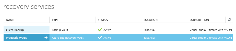 Provide name and choose and appropriate nearest location. In this case, the name is “ProductionVault” and region is “East Asia”. Click “Create Vault” to actually get the process of creating the vault get-going. Even if you provide the name with upper case letters, they would eventually be converted into lower case ones. It will take around 30 seconds to a minute to create the vault.
