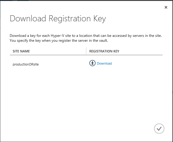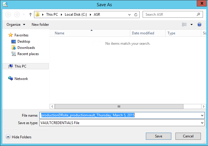 This would pop up a window displaying the site name along with download link. Click on download link and download the vault credential file and save it on file system i.e. “C:\ASR” folder location.