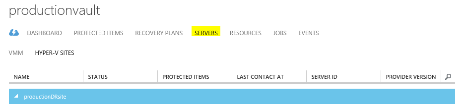 After the Hyper-v site is provisioned, it would be appearing within the server tab as shown below.
