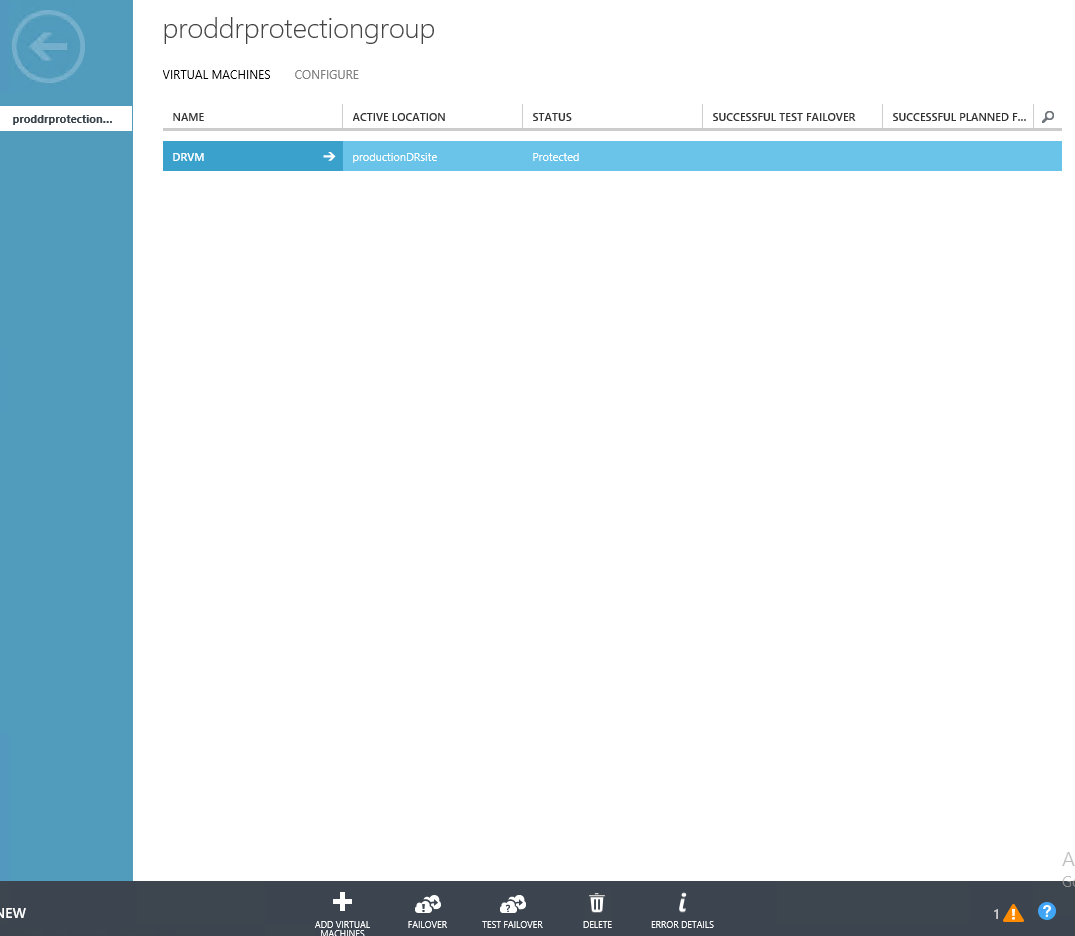 Under Protection group | Proddrprotectiongroup | Virtual machines, select the DRVM virtual machine and click on “Test Failover” button available at the bottom of the page.