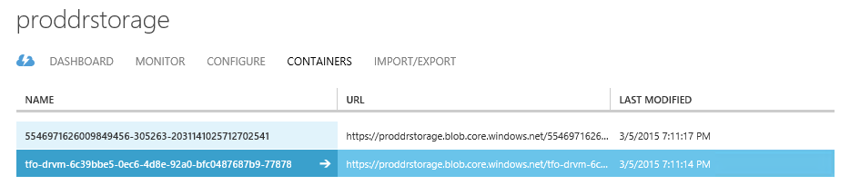 And within the same storage account provisioned earlier, a new container created storing containing the vhd blob for the test virtual machine. This is shown below.