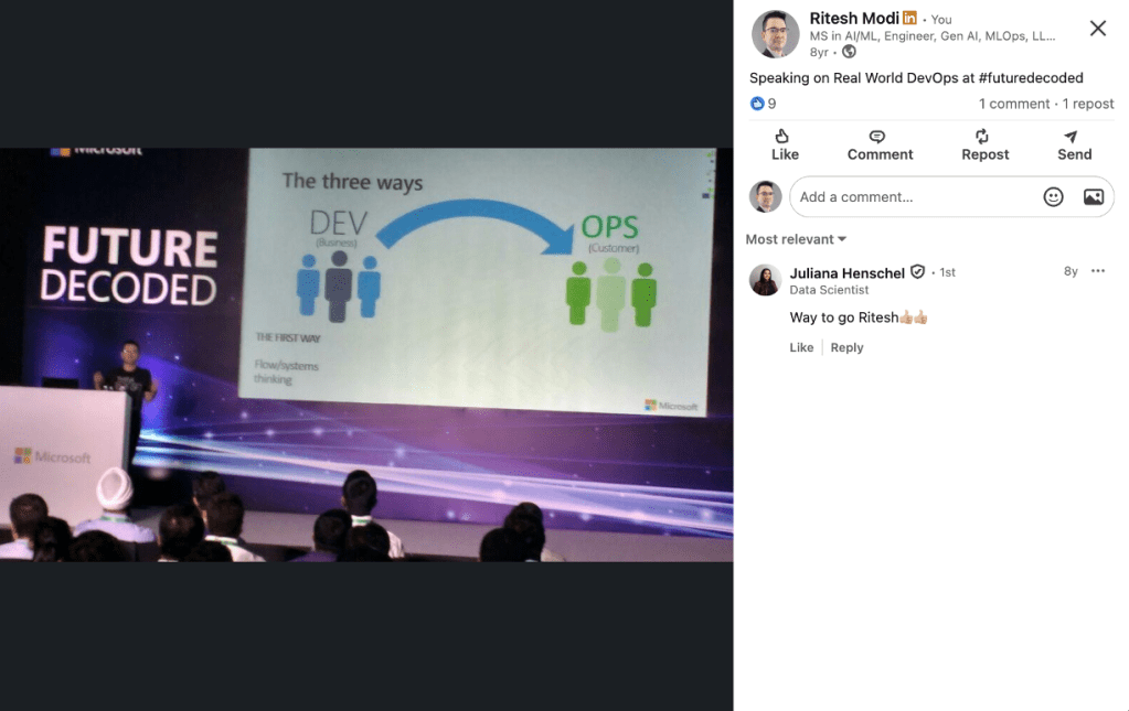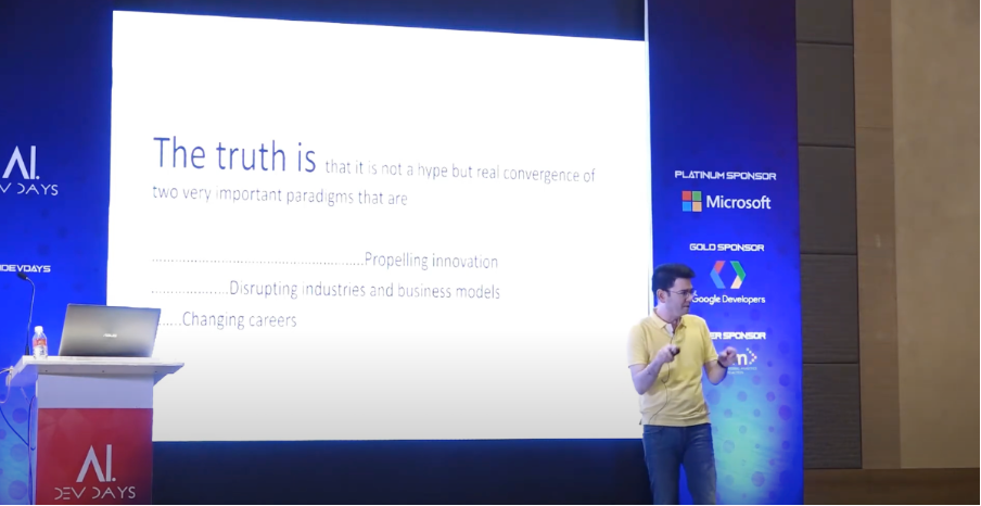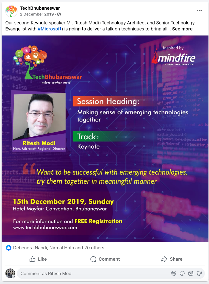 ‘Making sense of emerging technologies together’ the second keynote of the day and by far one the most engaging ones. Presented by Ritesh Modi, who spoke about emerging technology trends and how to bring together all emerging technologies to create intelligent and modern solutions, in addition to how developer/solution providers can be successful using them. He also gave a hands-on demo creating an intelligent application using cognitive services deployed in Kubernetes environment using DevOps CI/CD pipelines.