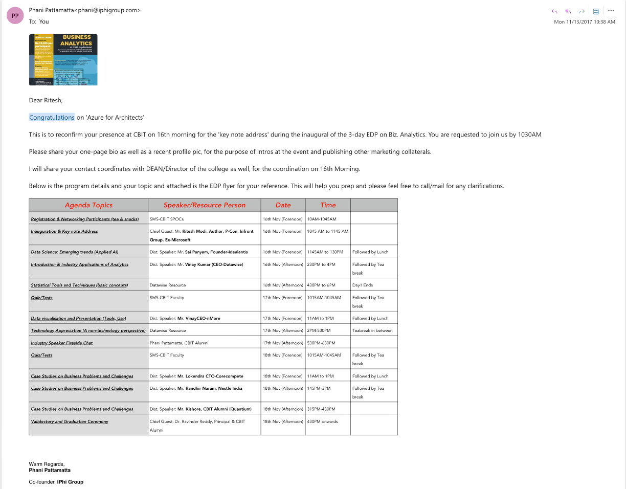 KeyNote speaker at Chaitanya Bharathi Institute of Technology (CBIT) on Data Science: Emerging trends