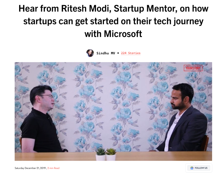 Ritesh Modi talks on how startups can get started on their tech journey with Microsoft